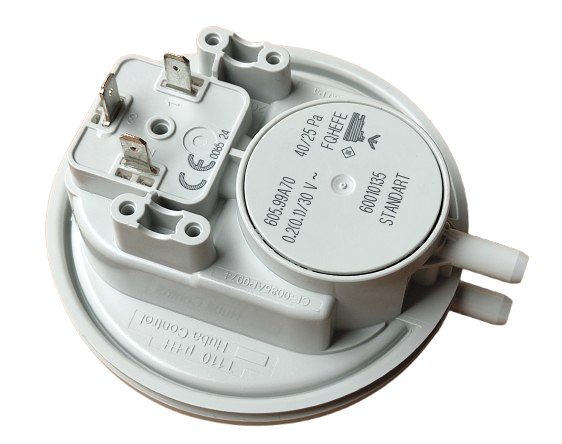 Kombi ve hermetik şofbenlerde fanın yarattığı hava akışını denetleyen ve atık gaz tahliyesinin güvenli olduğunu ana karta bildiren bir fark basınç anahtarıdır. Dünyaca ünlü Huba Control markasının standartlarına uygun olarak üretilmiş, 40/25 Pa (Pascal) değerine sahip, yuvarlak kasa yapısında yüksek hassasiyetli bir emniyet parçasıdır.